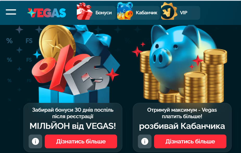 Регулярно посещая страницу «Бонусы» на сайте vegas.ua, можно найти новые бонусы и акции, а главное воспользоваться бездепозитным бонусом. Обратите внимание, что бездеп в казино Вегас не действует постоянно. Он может быть активен в рамках определенной акции или бонуса в установленный период (на время праздников или других значимых дат, при проведении турниров и т.п.).